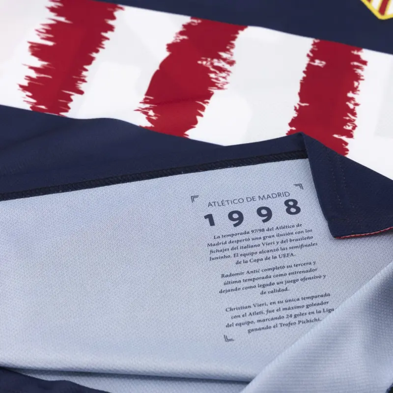 The Atlético de Madrid crest, in its 1998 version, embroidered on the chest, adds a distinctive touch that highlights your support for the club.