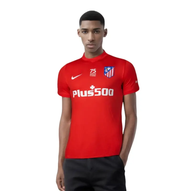 This garment not only pays tribute to these iconic events but also features the crest that represented the name change from Atlético Aviación to Atlético de Madrid on January 1, 1947. Prominently displayed in the center of the jersey is the motto ’75 years honoring your name’, a recognition of the club’s legacy and history over the years.