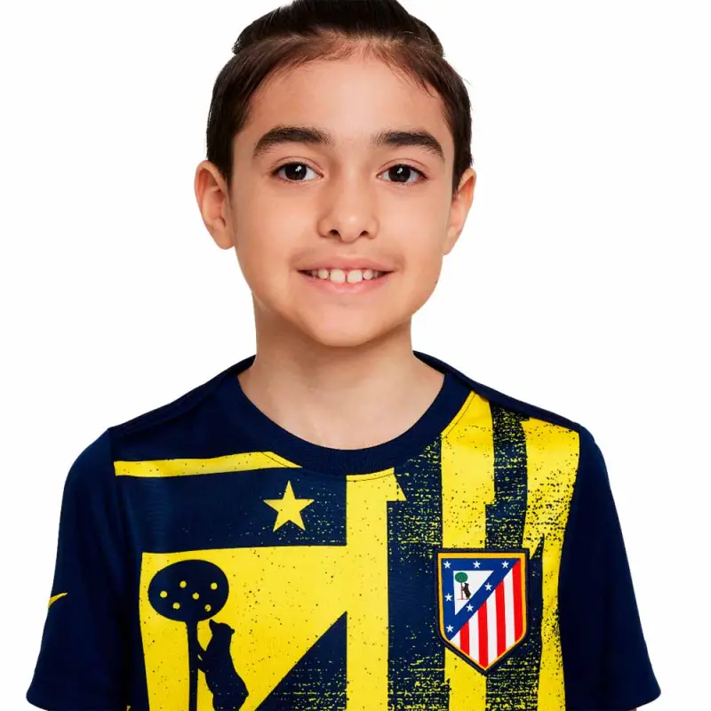 Featuring a navy blue base, it stands out with the club’s large crest on the front, in vibrant yellow, conveying all the strength and energy of Atleti.