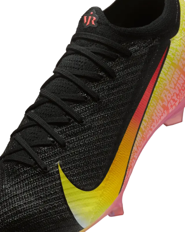 As Vini Jr. flies over the field at blinding speeds, Mercurial lifts him to new heights. The gradient design of his Vapor 16 Elite blends colors from his debut club to the Brazil national team—where he started and where he’s going. With bouncy Air Zoom cushioning, a new traction plate and revolutionary Gripknit, it unlocks his explosive acceleration into the future.