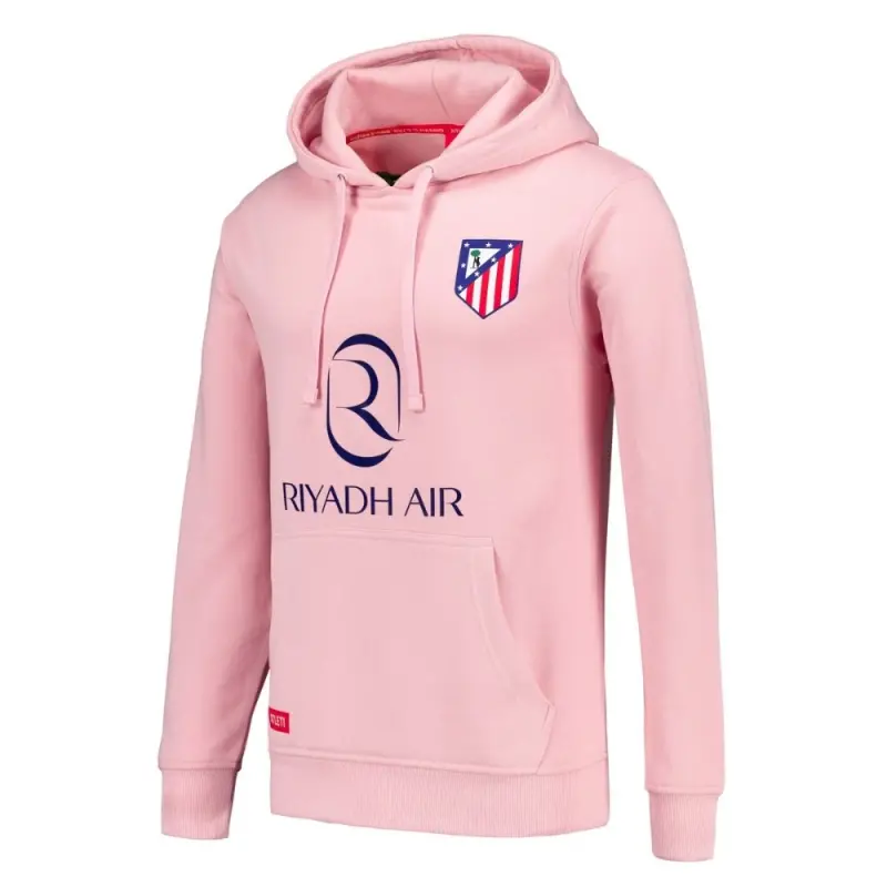 The Pink Riyadh Air Hoodie is a unique and vibrant piece, perfect for Atlético de Madrid fans who seek style and comfort in one item.